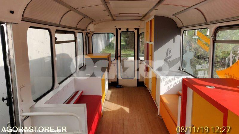 Autobus de collection vintage, aménagé en boutique, et doté d'une plate - forme arrière ouverte (balcon). Vendu en l'état
