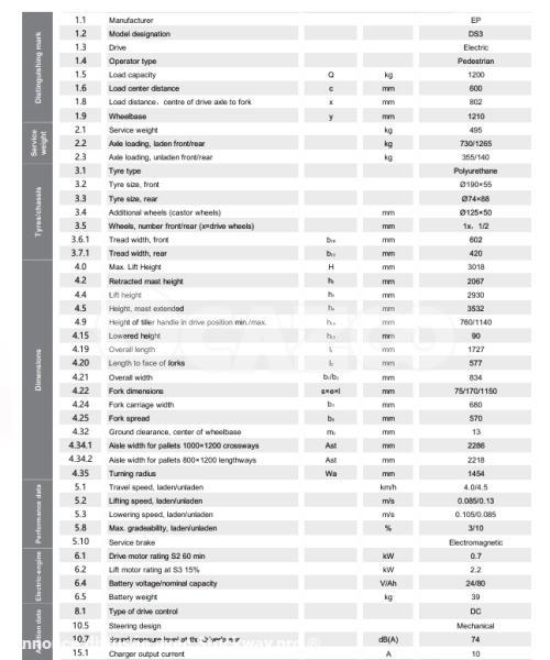 Hauteur de levage (m) : 3
