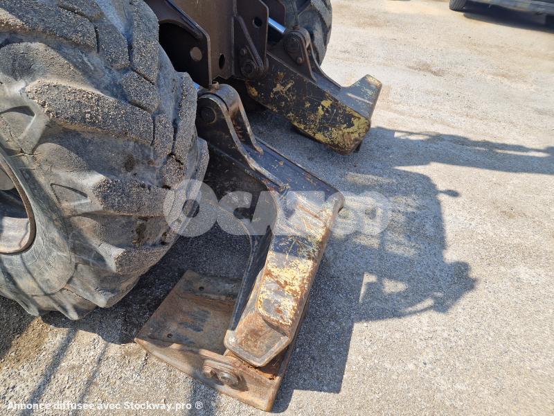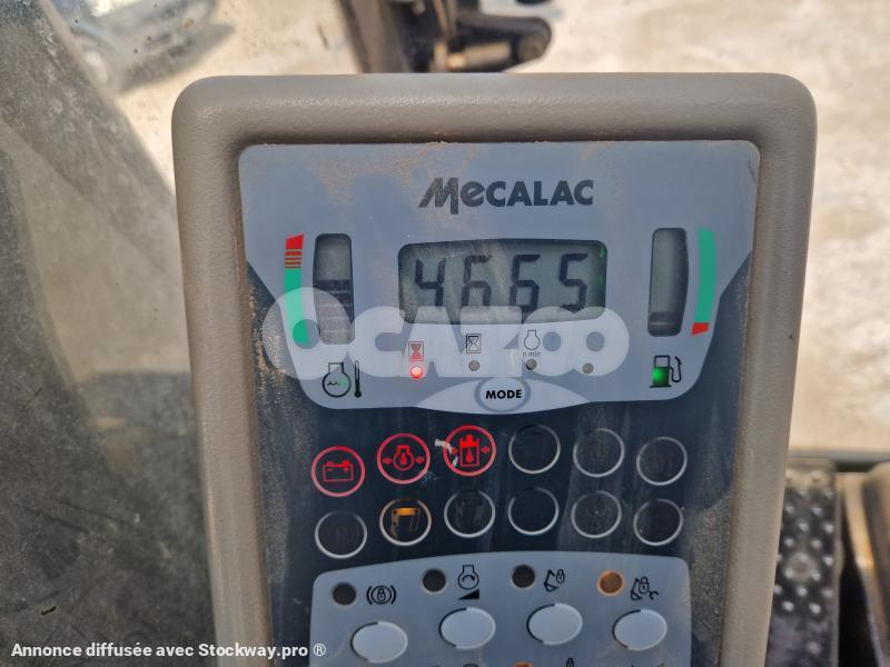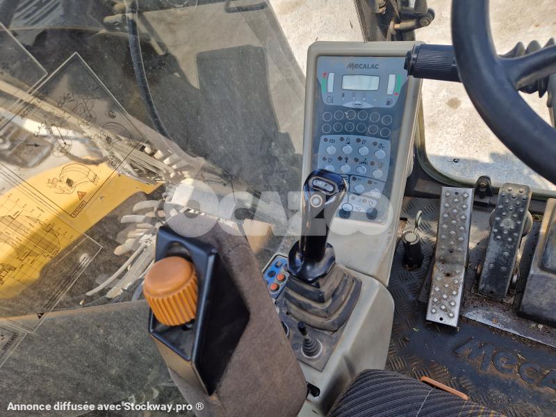 CHARGEUSE SUR PNEUS MECALAC 12MTX, ANNEE 2008, 4665h, 4 GODETS PELLE + FOURCHE, RAYON DE BRAQUAGE INTERIEUR 2.63m, RAYON DE BRAQUAGE EXTERIEUR 4.91m, CHASSIS AVEC 2 STABILISATEURS FRONTAUX, TOURELLE ROTATION 360°