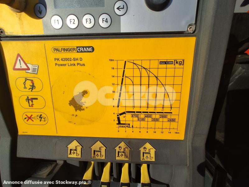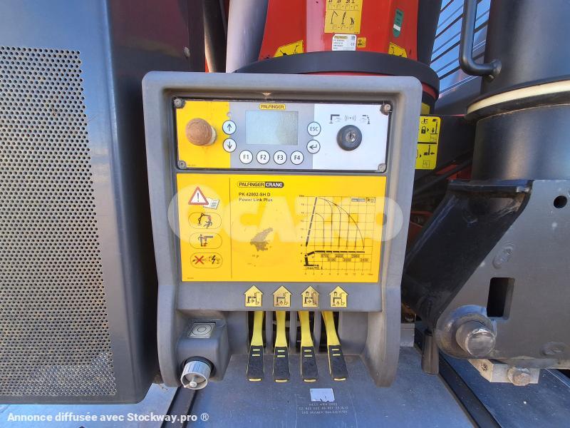 GRUE PALFINGER PK42002SH 2418 HEURES - 5 RALLONGES HYDRAULIQUES - 4 STABILISATEURS HYDRAULIQUES - ROTATION CONTINUE - LEVE 2450KG A 14M OU 8700KG A 4M - RADIOCOMMANDE - INTARDER - CLIMATISATION DE NUIT - SUSPENSION LAMES AVANT AIR ARRIERE - WEBASTO - CLIMATISATION