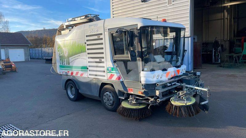 BALAYEUSE MATHIEU RAVO, DEUX BALAIS SOUS CABINE, UN TROISIEME BALAIS DE DESHERBAGE DEVANT, UNE BUSE D'ASPIRATION SOUS CABINE,